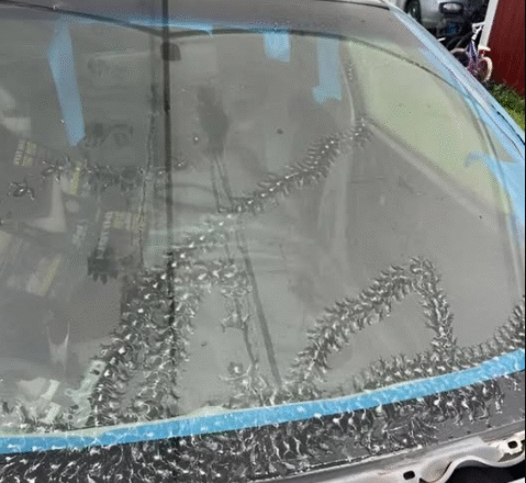 Dziwne ślady na przedniej szybie, niczym odciski łap, pojawiły się w nocy. A potem ogarnęła mnie dziwna mieszanka strachu i konsternacji.