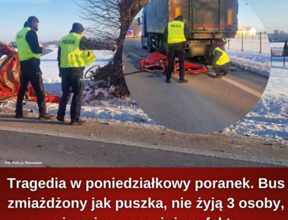 W miejscowości Chyliny (gm. Szelków, pow. makowski) ok. godziny 6.25 doszło do wypadku drogowego, w którym zginęły 3 osoby przewożone busem – dwie kobiety i mężczyzna w wieku od 40 do 65 lat. Najprawdopodobniej kierujący busem najechał na tył zaparkowanego na… pic.twitter.com/B0Ljpp3b35