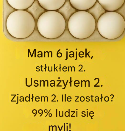 „Mam 6 jajek. Rozbiłem 2, usmażyłem 2 i zjadłem 2. Ile jajek zostało?”