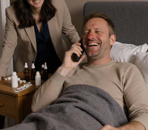 „Nic nie wiem” – przerwała. „Gotowałam ci zupę, prasowałam koszule, szukałam lekarstw w nocy. A ty… Udawałeś, że jesteś chory, żebym poszła do pracy, a potem…”