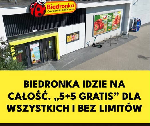 Biedronka wystartowała z agresywną kampanią promocyjną, która zwraca uwagę zwłaszcza dzięki nielimitowanym zakupom w ofercie „5+5 gratis”. Warto zauważyć, że podobne komunikaty pojawiają się u konkurencyjnego Lidla, który od 26 marca zapowiada zbliżone promocje na wiele produktów.
