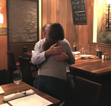 Mogłem ich wyraźnie widzieć przez duże okna. Siedzieli naprzeciw siebie, śmiejąc się i obejmując.