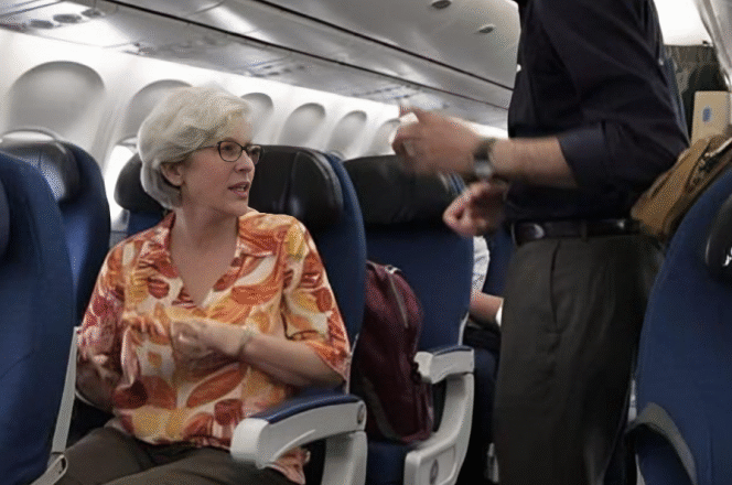 „Nie chcę siedzieć obok tej… kobiety!” Franklin Delaney krzyknął prawie głośno do stewardesy, wskazując na Stellę, starszą kobietę, która właśnie zajęła miejsce obok niego.