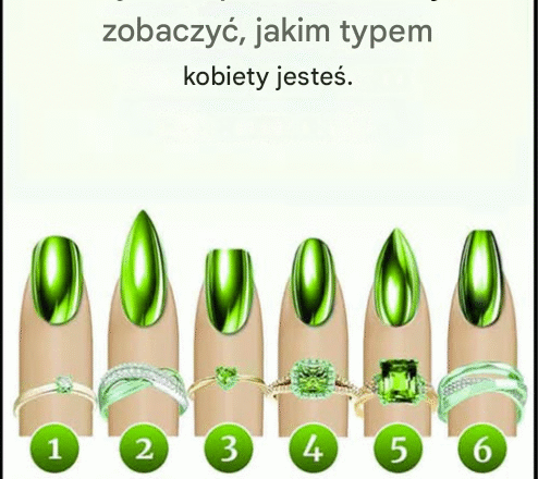 Twoje paznokcie mówią wiele o Tobie. Tak, dobrze przeczytałeś! Wystarczy spojrzeć na kształt paznokcia, który spontanicznie przykuwa Twoją uwagę, aby ten oryginalny test osobowości mógł Cię zaskoczyć. Wybierz ten, który najbardziej Ci się podoba z sześciu poniższych kształtów… i dowiedz się, co ujawnia o Twoich mocnych i słabych stronach oraz o tym, co jest dla Ciebie naprawdę ważne w życiu.